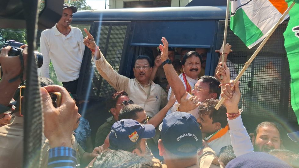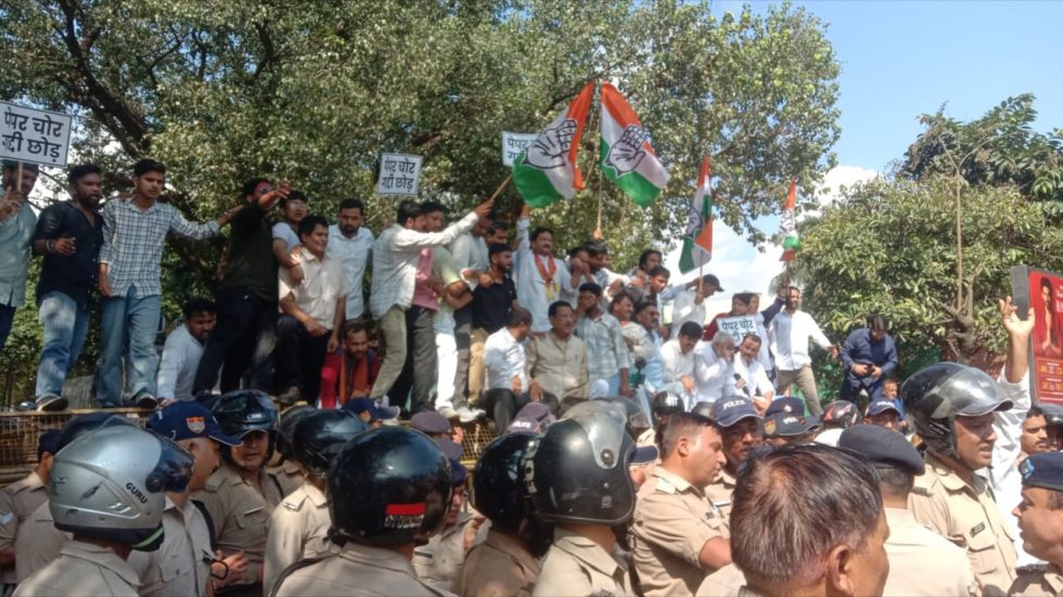 यूकेएसएसएससी की स्नातक स्तरीय भर्ती परीक्षा में हुए पेपर लीक घोटाले को लेकर कांग्रेस ने शुक्रवार को मुख्यमंत्री आवास कूच किया। इस दौरान कांग्रेसजन आयोग अध्यक्ष गणेश सिंह मर्तोलिया की बर्खास्तगी और भर्ती परीक्षा निरस्त कर नई तिथि घोषित किए जाने की मांग कर रहे थे। हाथीबड़कला पर पुलिस द्वारा लगाए गए बैरीकेड्स पर कांग्रेसजनों और पुलिस के बीच तीखी नोकझोंक और धक्का-मुक्की हुई।