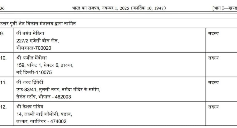 उत्तर पूर्वी क्षेत्र विकास मंत्रालय की हिंदी सलाहकार समिति में सदस्य नामित किया गया है। इस संबंध में गजट नोटिफिकेशन जारी कर दिया गया है।