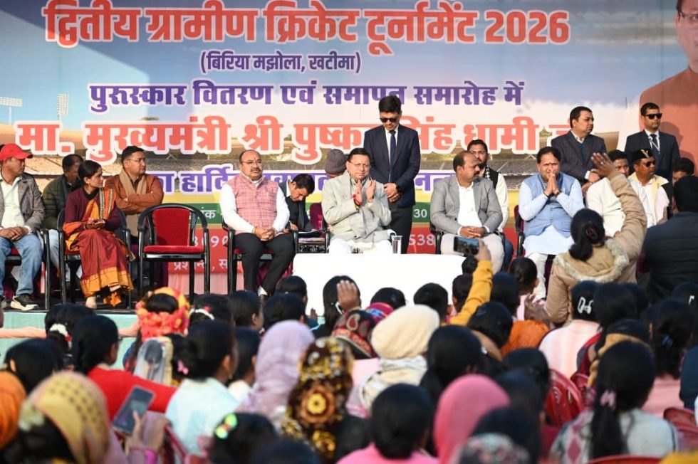 खटीमा। बिरिया मझोला खटीमा में स्वर्गीय मनीष चंद स्मृति द्वितीय ग्रामीण क्रिकेट टूर्नामेंट 2026 के समापन पर मुख्यमंत्री पुष्कर सिंह धामी ने खिलाड़ियों को पुरुस्कार वितरित किए।