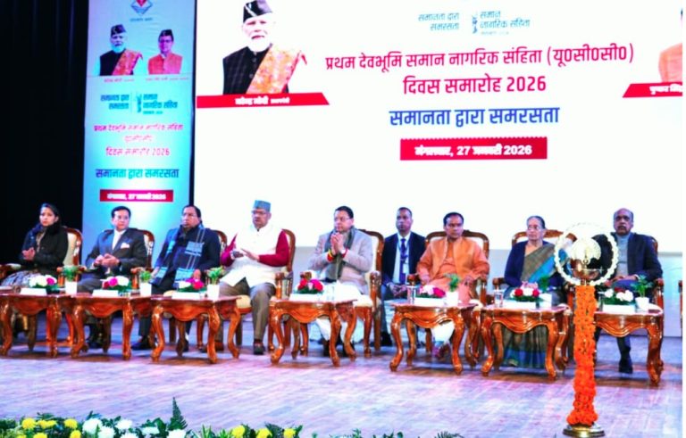 प्रथम “समान नागरिक संहिता दिवस” अधिकारियों और रजिस्ट्रेशन में सराहनीय कार्य करने वालों का सम्मान अविकल उत्तराखंड देहरादून। मुख्यमंत्री पुष्कर सिंह धामी ने मंगलवार को हिमालयन कल्चरल सेंटर गढ़ी कैंट … Continue reading यूसीसी की घोषणा व प्रभावी क्रियान्वयन तक गौरव की अनुभूति – सीएम
