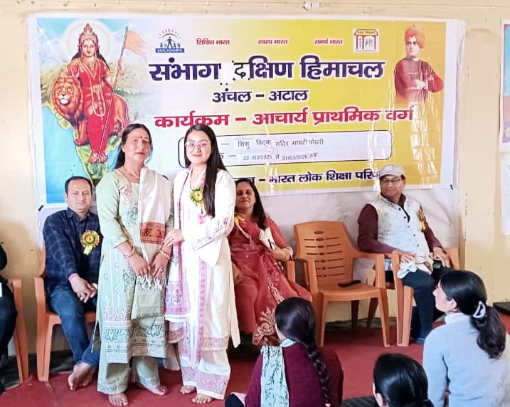 चकराता। माख्टी पोखरी गांव स्थित सरस्वती शिशु मंदिर में आयोजित दस दिवसीय आचार्य प्राथमिक प्रशिक्षण वर्ग का समापन समारोह सम्पन्न हुआ। इस अवसर पर मुख्य अतिथि अधिवक्ता एवं सनराइज एकेडमी की अध्यक्ष, स्पर्श हिमालय फाउंडेशन की निदेशक तथा कुसुम कांता फाउंडेशन की अध्यक्ष विदुषी निशंक ने कहा कि भारत शिक्षा लोक परिषद देशभर के सुदूर ग्रामीण क्षेत्रों की महिलाओं को शिक्षा के लिए प्रशिक्षित कर सराहनीय कार्य कर रहा है। उन्होंने कहा कि हमें अपनी सनातन संस्कृति पर गर्व होना चाहिए और इस अभियान के माध्यम से न केवल संस्कृति का संरक्षण हो रहा है बल्कि वैज्ञानिक चेतना का भी विकास किया जा रहा है, जिससे भारत को विश्वगुरु बनने में सहायता मिलेगी।