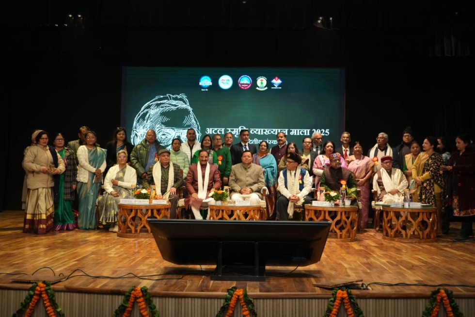 देहरादून। मुख्यमंत्री पुष्कर सिंह धामी ने गुरुवार को लेखक गांव थानो, देहरादून में भारत रत्न अटल बिहारी वाजपेयी की जयंती के अवसर पर आयोजित अटल स्मृति व्याख्यान माला–2025 कार्यक्रम में प्रतिभाग किया। इस अवसर पर मुख्यमंत्री ने अटल प्रेक्षागृह का लोकार्पण भी किया।