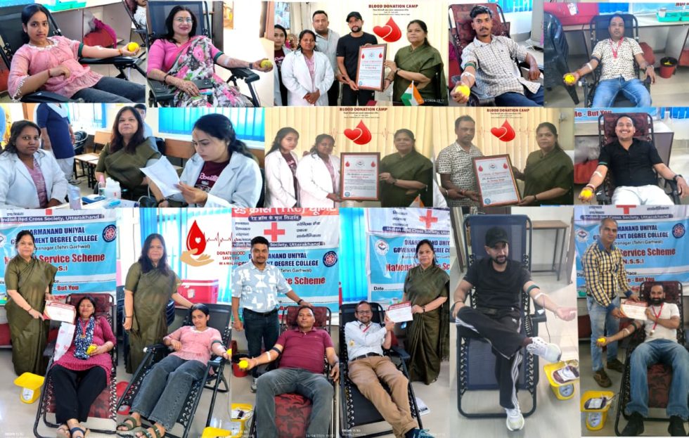 राजकीय महाविद्यालय नरेंद्र नगर में उच्च शिक्षा विभाग उत्तराखंड एवं वीरा फाउंडेशन के संयुक्त तत्वावधान में परिवर्तन चैरिटेबिल ब्लड सेंटर, ऋशिकेश की सहायता से रक्तदान शिविर आयोजित किया गया।