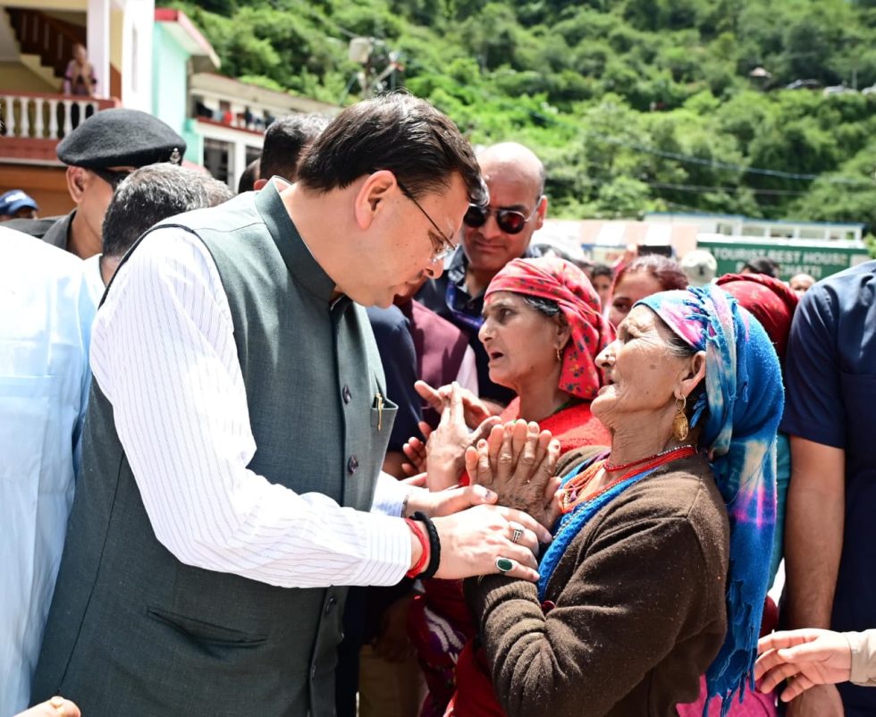 स्यानाचट्टी (उत्तरकाशी)। मुख्यमंत्री पुष्कर सिंह धामी ने बड़कोट तहसील के स्यानाचट्टी क्षेत्र का स्थलीय निरीक्षण किया। उन्होंने आपदा प्रभावित लोगों से मिलकर समस्याएं सुनीं और हर संभव सहायता उपलब्ध कराने का आश्वासन दिया।
