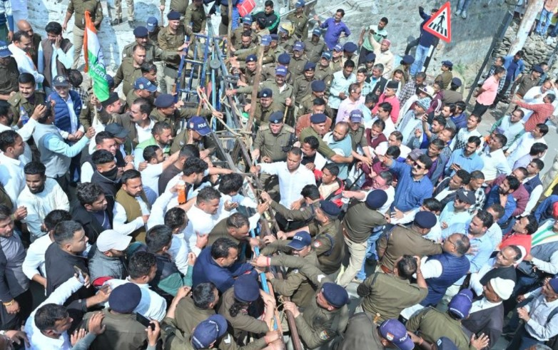 - पुलिस और प्रदर्शनकारियों के बीच धक्का-मुक्की