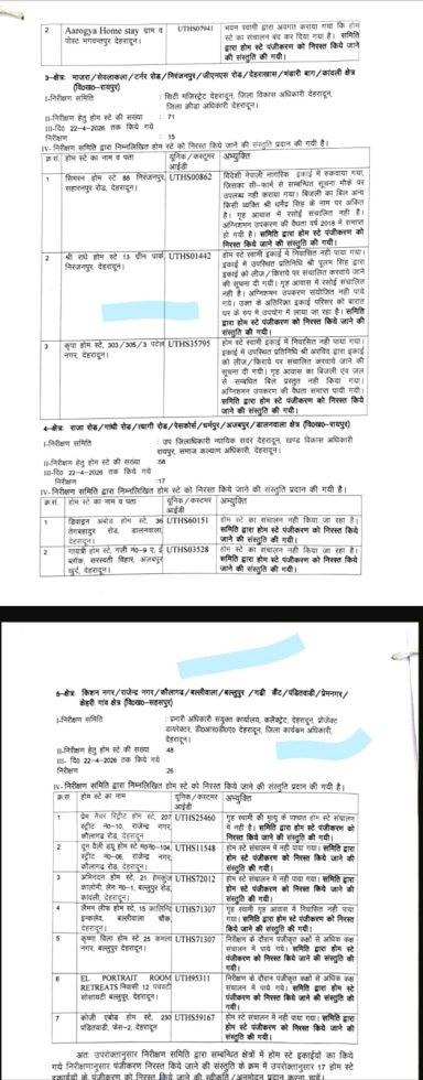 देहरादून। जनपद में कानून-व्यवस्था सुदृढ़ बनाए रखने तथा आमजन की सुरक्षा सुनिश्चित करने के उद्देश्य से जिलाधिकारी सविन बंसल के निर्देशानुसार होमस्टे संचालन की गहन जांच कराई गई।