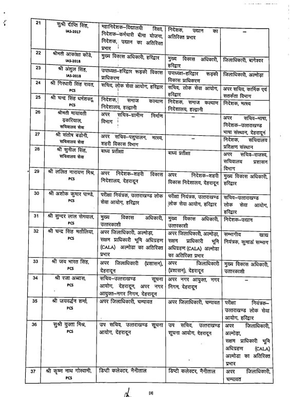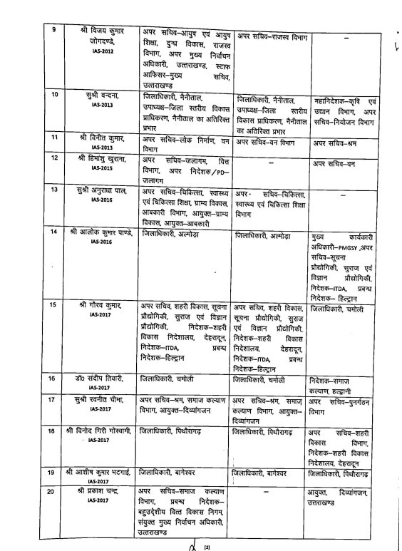 आईएएस रणवीर चौहान को खाद्य, धीराज गर्ब्याल को ग्राम्य विकास ,ग्रामीण निर्माण व आईएफएस पराग धकाते को पंचायती राज की अहम जिम्मेदारी दी गयी।