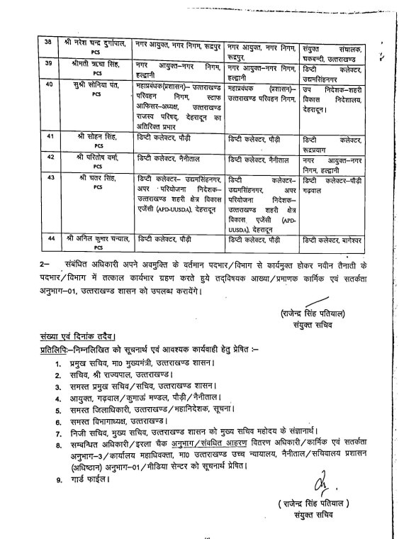 अपर सचिव संतोष बडोनी को निदेशक, सचिवालय प्रशिक्षण संस्थान की जिम्मेदारी भो दी गयी।