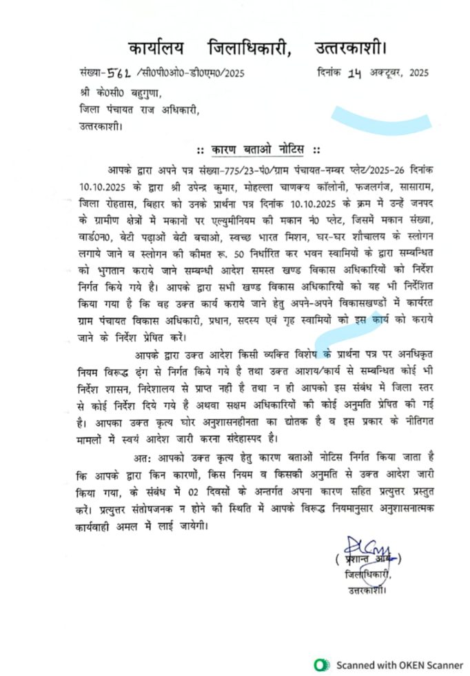 (के०सी०बहुगुणा) जिला पंचायत राज अधिकारी उत्तरकाशी।