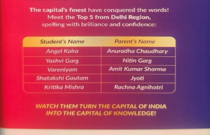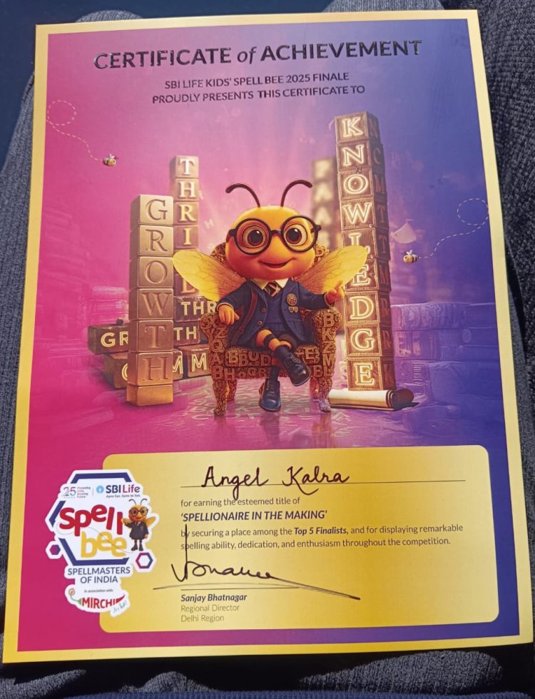 रुड़की। दिल्ली पब्लिक स्कूल, रुड़की की छात्रा एंजेल कालरा (कक्षा 8 ) का राष्ट्रीय स्तर की स्पेल बी‘ प्रतियोगिता के टॉप पांच विजेता में चयन हुआ है।