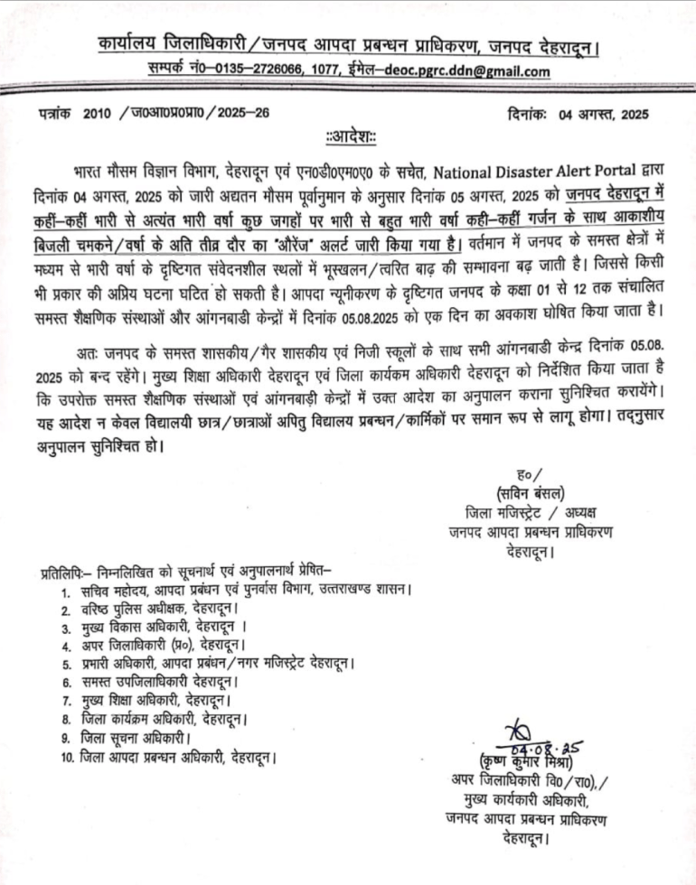 टिहरी, देहरादून, पौड़ी और बागेश्वर रेड अलर्ट पर। हरिद्वार, नैनीताल और चंपावत में ऑरेंज अलर्ट