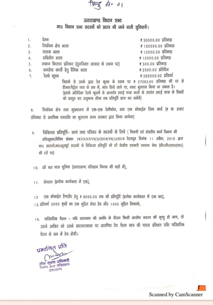 ऐसे प्रदेश में एक विधायक को लगभग 3.25 लाख रुपए वेतन -भत्ते एवं ₹60,000 पेंशन प्लस स्लैब + 20,000 रुपए ईंधन भत्ता दिया जा रहा हो, इन हालातों में प्रदेश दिवालिया नहीं होगा तो और क्या होगा!नेगी ने कहा कि इन महा गरीब विधायकों को प्रतिमाह वेतन- भत्तों के नाम पर डेढ़ लाख रुपया निर्वाचन क्षेत्र भत्ता, ₹30,000 वेतन,₹60,000 जन सेवा भता, ₹27,000 ईंधन तथा ₹6,000 टेलीफोन/ मोबाइल खर्च इत्यादि हेतु दिया जा रहा है ।