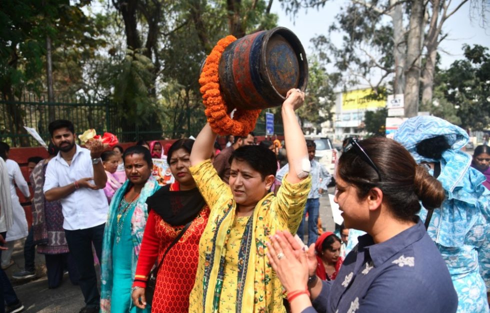 गैस सिलेंडर की ‘अंत्येष्टि’ कर महिला कांग्रेस का विरोध प्रदर्शन