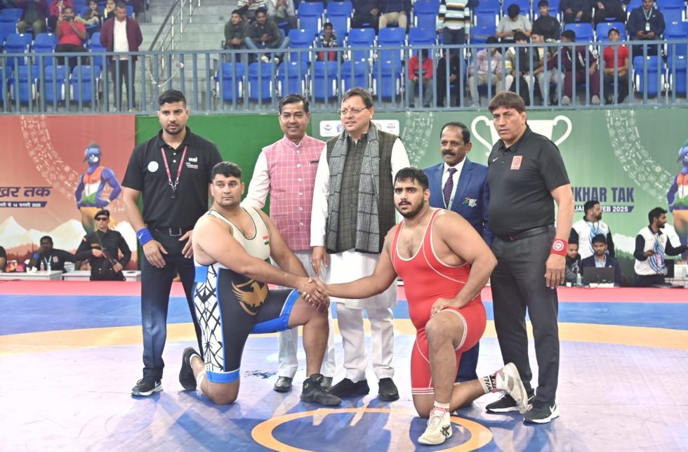 देहरादून। मुख्यमंत्री पुष्कर सिंह धामी ने बुधवार को वन्दना कटारिया स्पोर्ट्स स्टेडियम पहुॅचकर 38वें राष्ट्रीय खेलों के अन्तर्गत आयोजित कुश्ती तथा हॉकी प्रतियोगिता का शुभारंभ किया। इस अवसर पर मुख्यमंत्री ने सभी खिलाड़ियों से मुलाकात कर उनका उत्साह वर्धन किया।