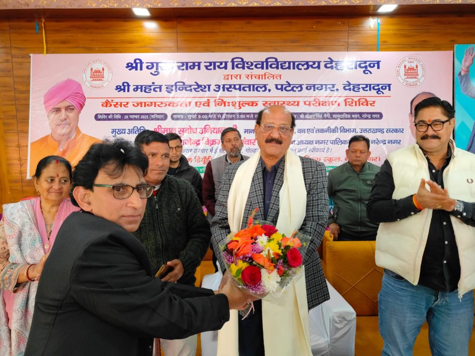 देहरादून। श्री गुरु राम राय विश्वविद्यालय एवम् श्री महंत इन्दिरेश अस्पताल के सौजन्य से नरेन्द्र नगर में शनिवार को कैंसर जागरूकता एवं निःशुल्क स्वास्थ्य परीक्षण शिविर का सफल आयोजन किया गया।