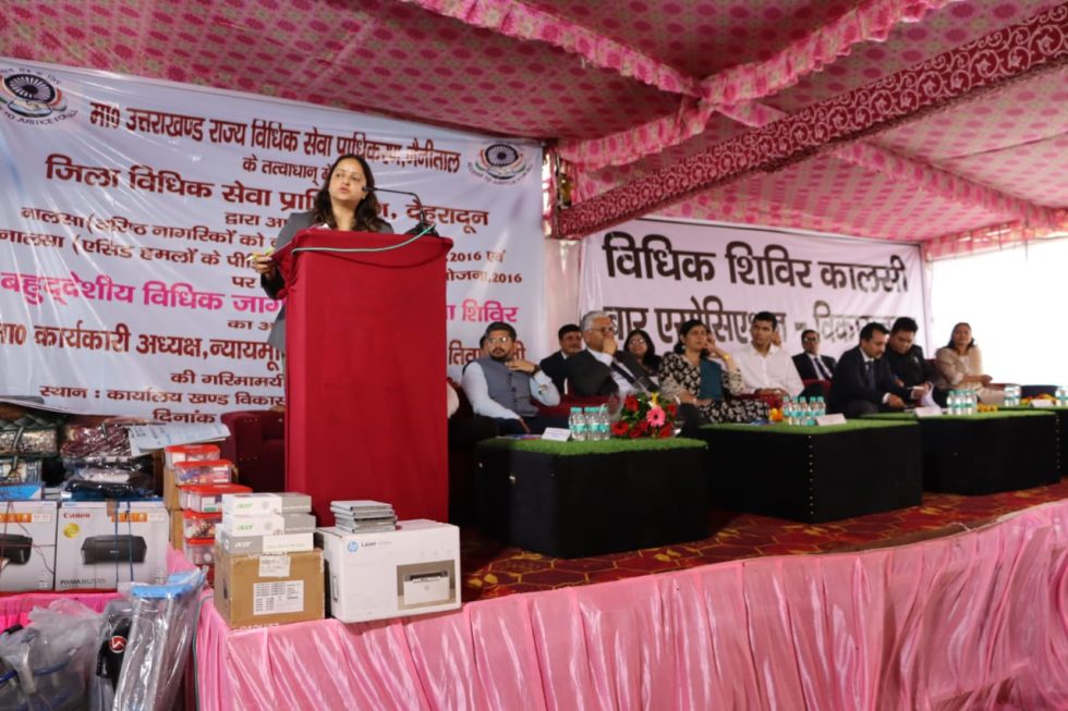 देहरादून। दूरस्थ जनजातीय क्षेत्र कालसी में जिला विधिक सेवा प्राधिकरण, देहरादून द्वारा बहुद्देशीय शिविर का आयोजन किया गया। इस अवसर पर मा0 कार्यकारी अध्यक्ष न्यायमूर्ति मनोज तिवारी एवं मा0 न्यायमूर्ति मंजू तिवारी मुख्य अतिथि के रूप में उपस्थित रहे।