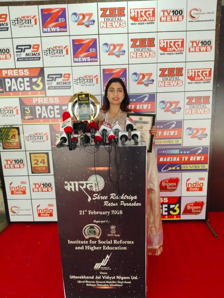 यह सम्मान Institute for Social Reforms and Higher Education Charitable Trust (ISRHE) द्वारा आयोजित एक गरिमामय समारोह में प्रदान किया गया, जिसमें शिक्षा, प्रशासन, सामाजिक सेवा एवं नीति निर्माण से जुड़े अनेक विशिष्ट अतिथियों ने सहभागिता की।