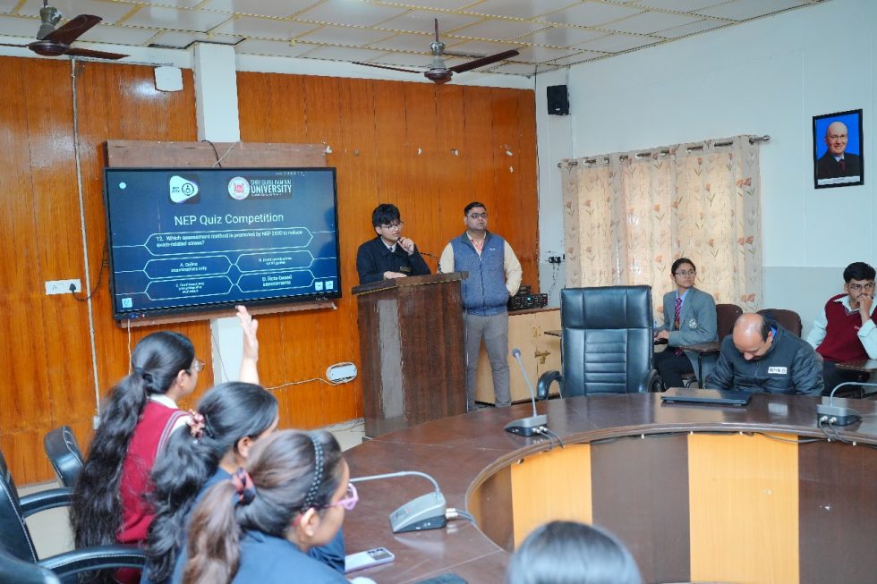 रजिस्ट्रार डॉ. लोकेश गंभीर एवं डीन स्टूडेंट वेल्फेयर प्रो. मालविका सती कांडपाल का भी इस आयोजन में काफी योगदान रहा है। इसी कड़ी में ये क्विज प्रतियोगिता आयोजित की जा रही है। उन्होंने कहा कि नेशनल एजुकेशन पॉलिसी आधारित इस क्विज का आयोजन केवल प्रतिभागियों के ज्ञान की परख करना नहीं है अपितु शिक्षा के क्षेत्र में नए विचार और नए परिप्रेक्ष्य में छात्रों की प्रतिभा को भी निखारना है।