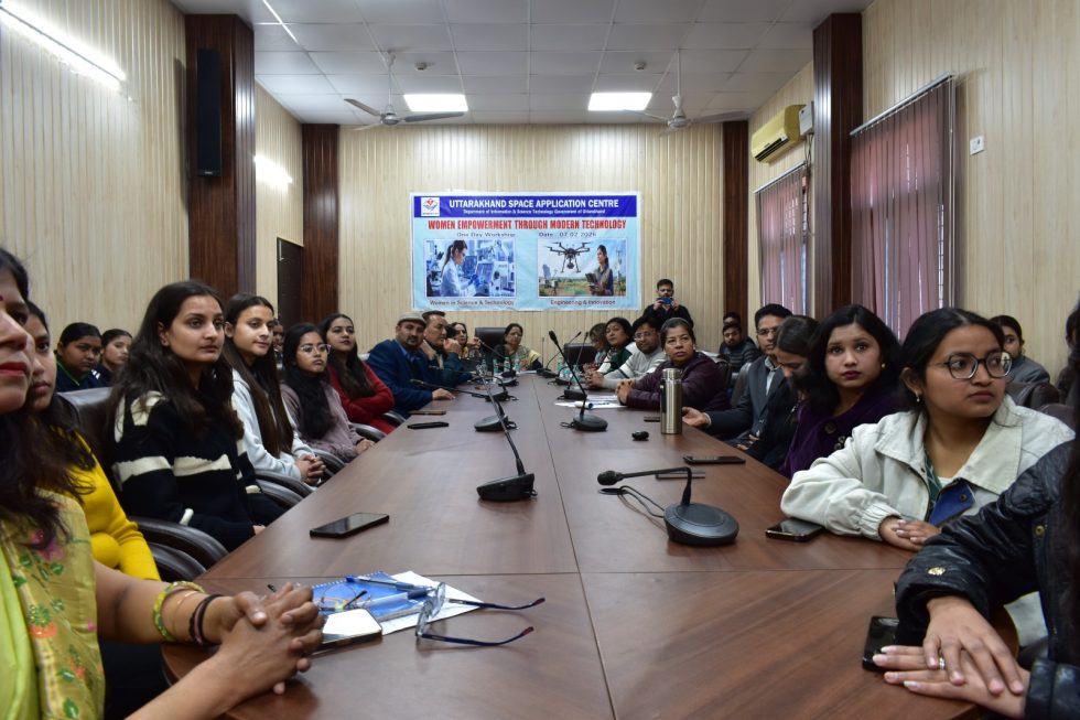 देहरादून। उत्तराखंड अंतरिक्ष उपयोग केंद्र (यूसैक) के सभागार में आधुनिक तकनीक के माध्यम से महिला सशक्तिकरण विषय पर एक दिवसीय कार्यशाला आयोजित की गई। कार्यशाला का उद्देश्य महिलाओं को अंतरिक्ष तकनीक RS/GIS, आर्टिफिशियल इंटेलिजेंस और ड्रोन तकनीक से जोड़कर उन्हें शैक्षणिक एवं व्यावसायिक रूप से सशक्त और आत्मनिर्भर बनाना रहा।