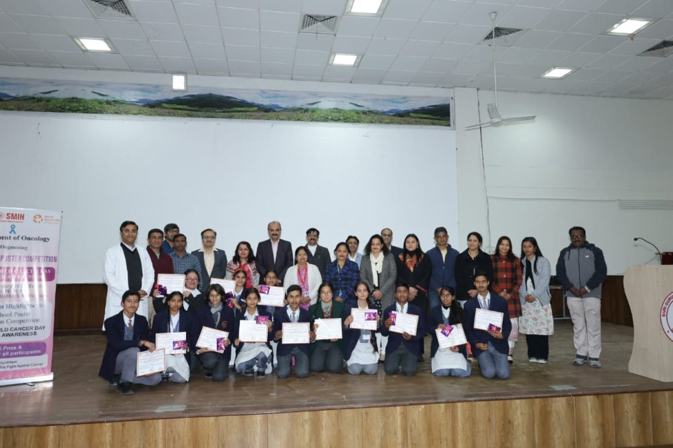 देहरादून। श्री महंत इन्दिरेश अस्पताल के कैंसर सर्जरी विभाग की ओर से कैंसर जागरूकता कार्यक्रम आयोजित किया गया। देहरादून के विभिन्न स्कूलों के 12 स्कूलों के 120 बच्चों ने पोस्टर प्रतियोगिता में प्रतिभाग किया। हिमालयन पब्लिक स्कूल की अन्नया को बेस्ट पोस्टर बनाने के लिए प्रथम पुरस्कार से नवाजा गया। श्री गुरु राम राय पब्लिक स्कूल पटेल नगर के राम विशाल को द्वितीय एवम् एसजीआरआर पब्लिक स्कूल तालाब शाखा के अभिषेक के पोस्टर को तृतीय स्थान प्राप्त हुआ। विजेता बच्चों को पुरस्कार देकर सम्मानित किया गया। प्रतियोगिता में प्रतिभाग करने वाले सभी 120 बच्चों को प्रमाण पत्र देकर उत्साहवर्धन किया गया। 10 बच्चों को सांत्वना पुरस्कार दिए गए।