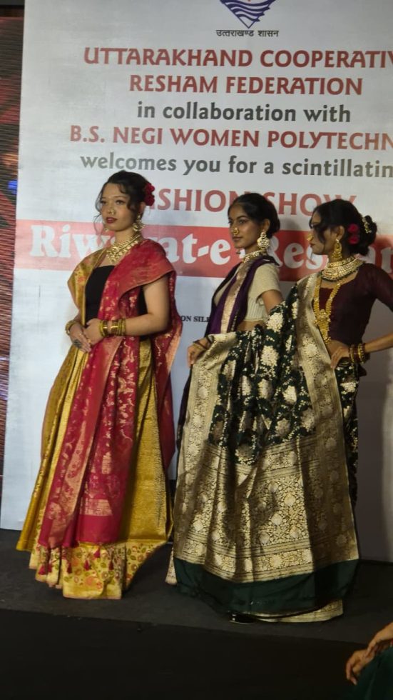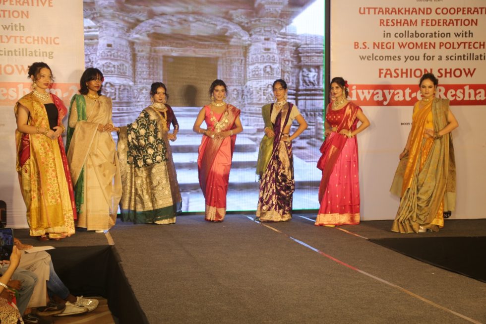 एक्सपो का मुख्य आकर्षण फैशन शो “रिवायत-ए-रेशम-2” रहा, जिसमें बी.एस. नेगी महिला प्राविधिक प्रशिक्षण संस्थान की छात्राओं ने ‘दून सिल्क’ ब्रांड के परिधानों का शानदार प्रदर्शन किया। छात्राओं ने रेशमी साड़ियाँ, कुर्ते, वेस्टकोट, टोपियाँ और स्वनिर्मित ज्वैलरी के साथ परंपरा व आधुनिकता का अद्भुत संगम पेश कर दर्शकों का दिल जीत लिया।