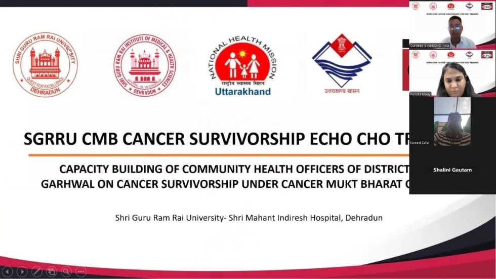 इस वर्चुअल प्रशिक्षण कार्यक्रम में पौड़ी जिले के कुल 130 कम्युनिटी हेल्थ ऑफिसर्स (CHOs) ने भाग लिया। यह कार्यक्रम श्री महंत इन्दिरेश अस्पताल, देहरादून के कैंसर विभाग, ECHO इंडिया (एनजीओ) एवं राष्ट्रीय स्वास्थ्य मिशन (NHM), उत्तराखंड सरकार के संयुक्त सहयोग से आयोजित किया गया। यह संयुक्त प्रयास राज्य में कैंसर सर्वाइवरशिप के क्षेत्र में सामुदायिक स्तर पर क्षमता निर्माण की दिशा में एक अहम कदम है।