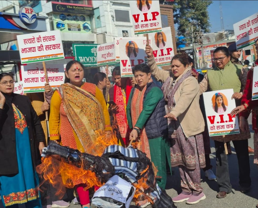 इधर देहरादून में प्रदेश महिला कांग्रेस अध्यक्ष ज्योति रौतेला के नेतृत्व में महिला कांग्रेस कार्यकर्ताओं ने भाजपा सरकार का पुतला दहन किया। ज्योति रौतेला ने आरोप लगाया कि अंकिता हत्याकांड में शामिल वीआईपी का नाम उजागर होने के बाद यह साफ हो गया है कि मामले में केवल स्थानीय स्तर ही नहीं, बल्कि भाजपा का शीर्ष नेतृत्व भी संदेह के घेरे में है।
