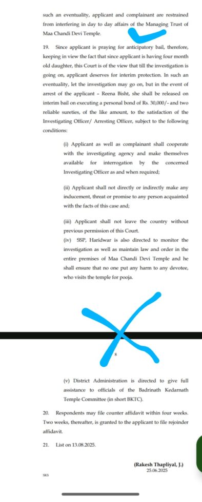 इधऱ, सोमवार को सुप्रीन कोर्ट के नोटिस पर बीकेटीसी के सीईओ विजय थपलियाल ने बताया कि माननीय उच्च न्यायालय नैनीताल में विचाराधीन प्रार्थना पत्र सं० 692/2025 में पारित आदेश दिनांक 25 जून 2025 के अनुपालन में 2 जुलाई, 2025 को श्री बदरीनाथ केदारनाथ मन्दिर समिति द्वारा मॉ चण्डी देवी मन्दिर परमार्थ ट्रस्ट हरिद्वार का अधिग्रहण करते हुए संचालन / प्रबन्धन का पर्यवेक्षण कार्य शुरू कर दिया गया था।