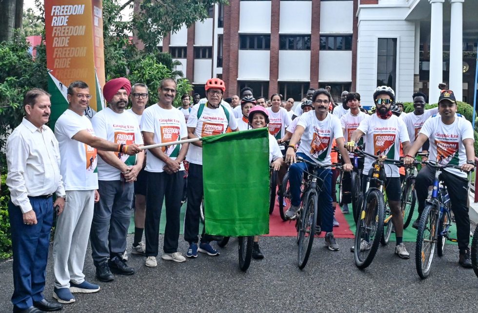 देहरादून। ग्राफिक एरा के शिक्षकों और छात्र-छात्राओं ने स्वतंत्रता दिवस के अवसर पर साइकिल रैली निकाल कर एकता और सद्भाव का पैगाम दिया। फ्रीडम रैली के नाम से आयोजित इस साइकिल रैली में ग्राफिक एरा में 17 अन्य देशों के छात्र-छात्राओं ने भी बहुत उत्साह से भाग लिया। मेयर श्री सौरभ थपलियाल ने इस रैली का श्रीगणेश करते हुए युवा से देश की एकता और अखंडता को मजबूत बनाने के साथ ही विकास में पूरी क्षमता से योगदान देने का आह्वान किया।