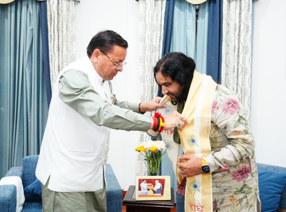 देहरादून। मुख्यमंत्री पुष्कर सिंह धामी से प्रसिद्ध कथा वाचक एवं आध्यात्मिक गुरु देवकीनंदन ठाकुर महाराज ने शिष्टाचार भेंट की।