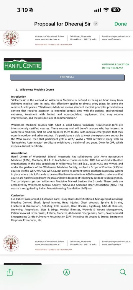 माननीय मुख्यमंत्री के निर्देशों के क्रम में इस योजना के तहत राज्य के नदी राफ्टिंग गाइडों को प्राथमिक उपचार (फर्स्ट एड) एवं सीपीआर का विशेष प्रशिक्षण दिया जा रहा है। प्रशिक्षण कार्यक्रम की कुल लागत का 25 प्रतिशत राफ्टिंग कंपनियों द्वारा, 25 प्रतिशत गंगा नदी नैचुरल (GNR) द्वारा तथा शेष 50 प्रतिशत व्यय उत्तराखंड पर्यटन विकास बोर्ड द्वारा वहन किया जा रहा है।