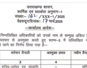 आईपीएस रिद्धिम बनीं आईजी कुमाऊं अरुण मोहन जोशी को SDRF की कमान आईएएस व पीसीएस को मिली नयी जिम्मेदारी प्रशिक्षु डिप्टी कलेक्टर को जिलों में किया तैनात आईपीएस ट्रांसफर