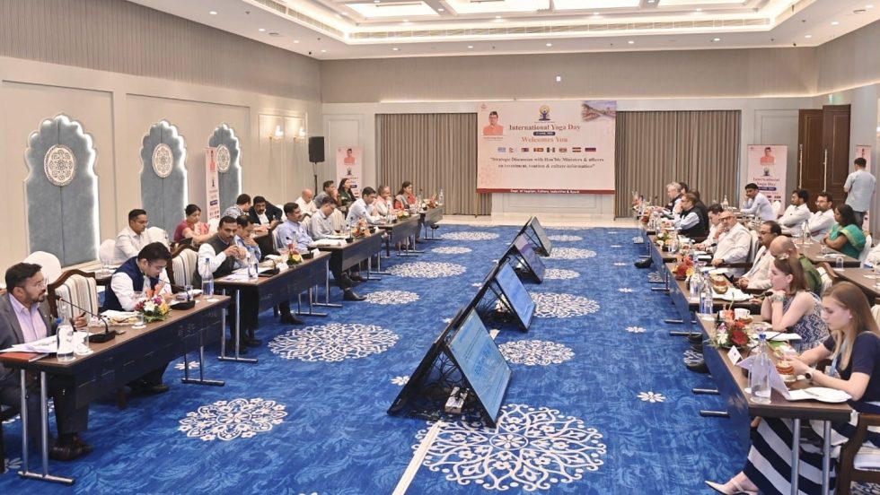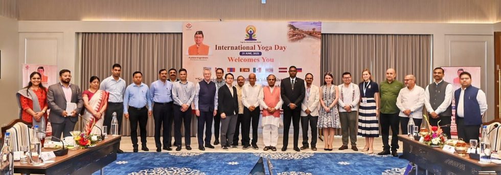 हरिद्वार। अंतरराष्ट्रीय योग दिवस के अवसर पर उत्तराखंड आए विभिन्न देशों के राजदूतों, उच्चायुक्तों और प्रतिनिधियों के साथ निवेश, आयुष, पर्यटन और संस्कृति के क्षेत्रों में रणनीतिक चर्चा हेतु एक महत्वपूर्ण बैठक हरिद्वार में आयोजित की गई।
