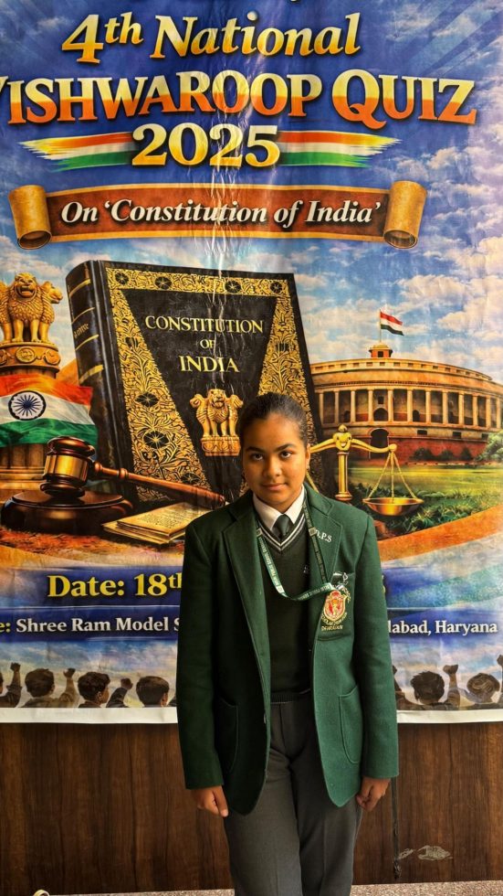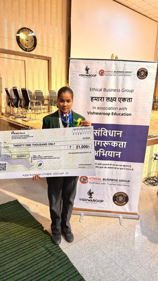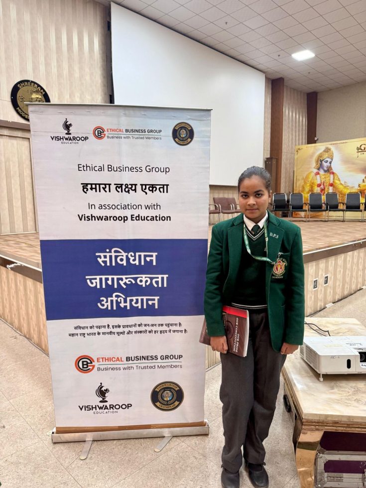 Prior to this, Samiksha secured 1st position at both school level and state level rounds of the 4th Vishwaroop Olympiad/ Quiz on “The Constitution of India”.