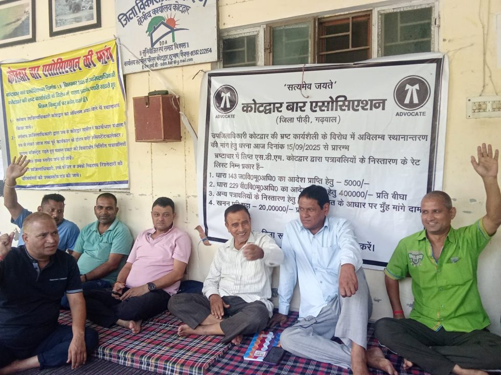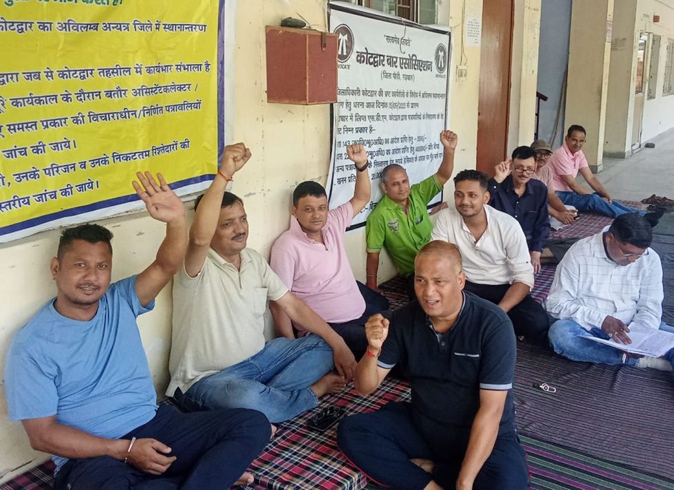 कोटद्वार। कोटद्वार बार एसोसिएशन का एसडीएम की कार्यशैली के विरोध में आक्रोश बढ़ता ही जा रहा है। गांधी जयंती व दशहरा पर्व होने के बावजूद वकील तहसील में जमे हुए हैं।