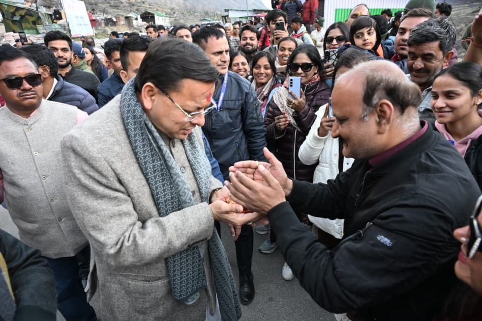 माणा। मुख्यमंत्री पुष्कर सिंह धामी ने बुधवार को भारत के प्रथम सीमांत गांव माणा पहुंचकर क्षेत्र का भ्रमण किया तथा वहां आए श्रद्धालुओं एवं स्थानीय जनता से आत्मीय संवाद किया।