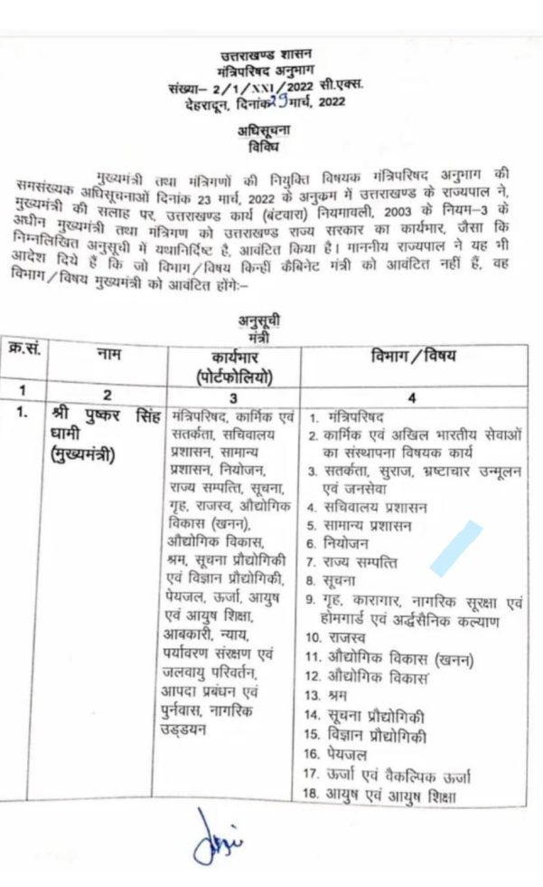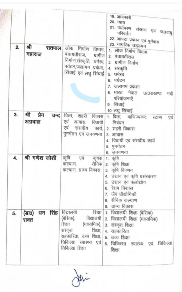 धामी कैबिनेट में सतपाल महाराज, प्रेम चंद अग्रवाल,गणेश जोशी, धन सिंह रावत, सुबोध उनियाल, रेखा आर्य, चंदन रामदास और सौरभ बहुगुणा को जगह मिली थी। कांग्रेसी गोत्र के दबाव ने कई वरिष्ठ भाजपा नेताओं को किनारे पर लगा दिया था।