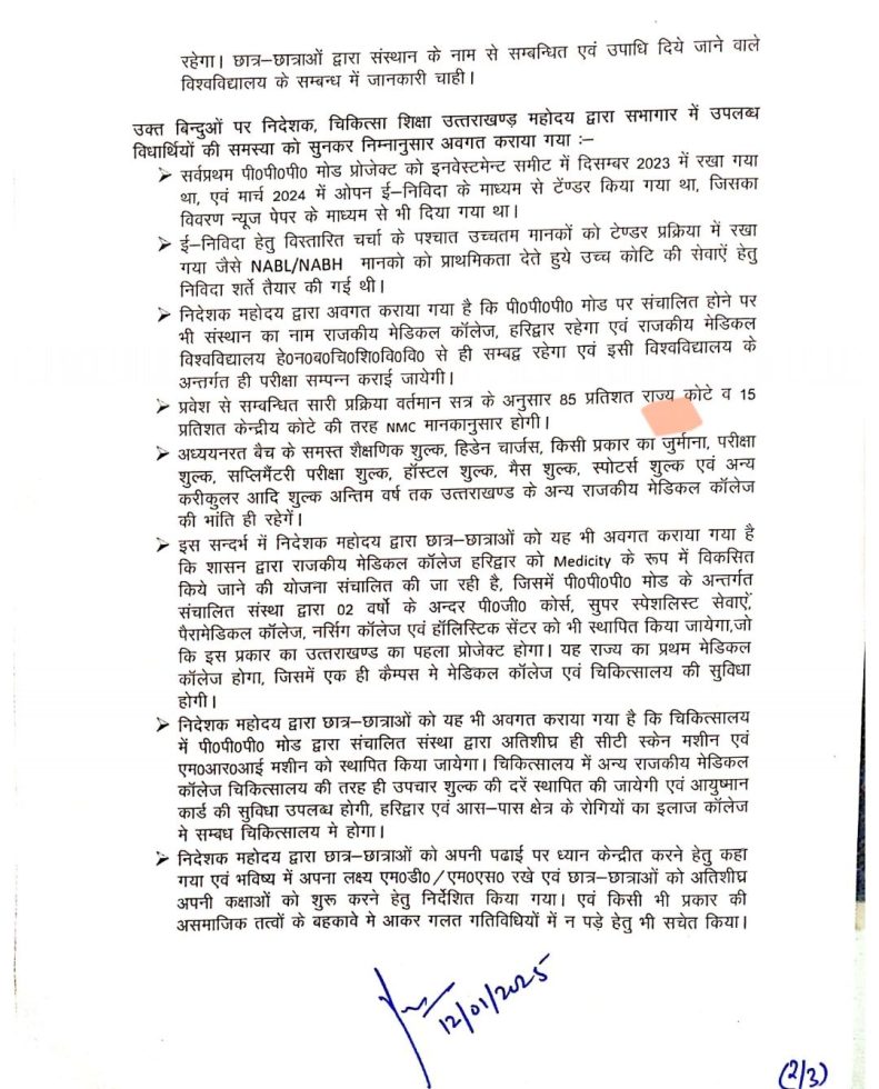 देखें, स्टूडेंट्स की मांग पर सरकार ने हरिद्वार राजकीय मेडिकल कालेज के बाबत क्या  फैसले किये
